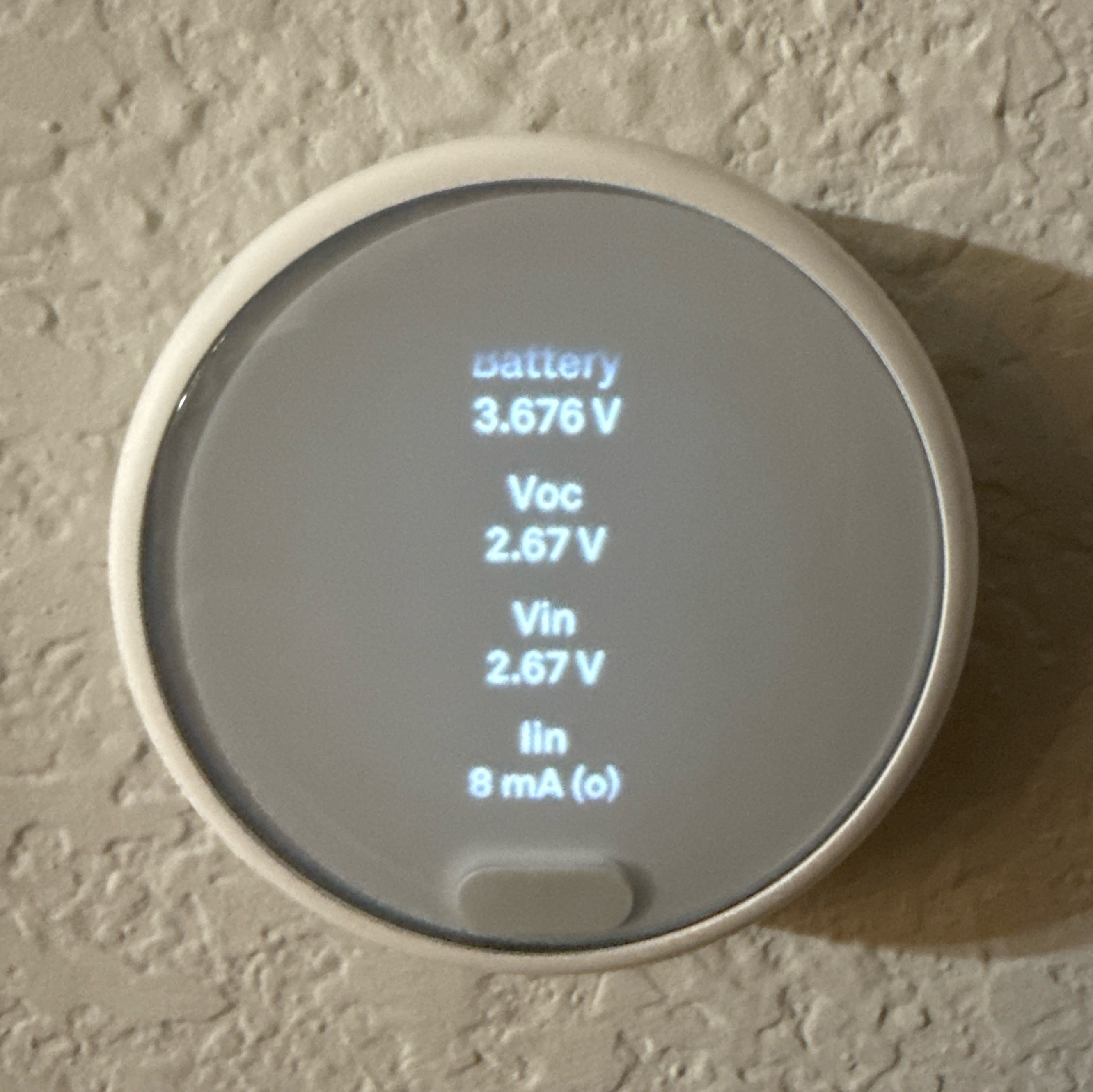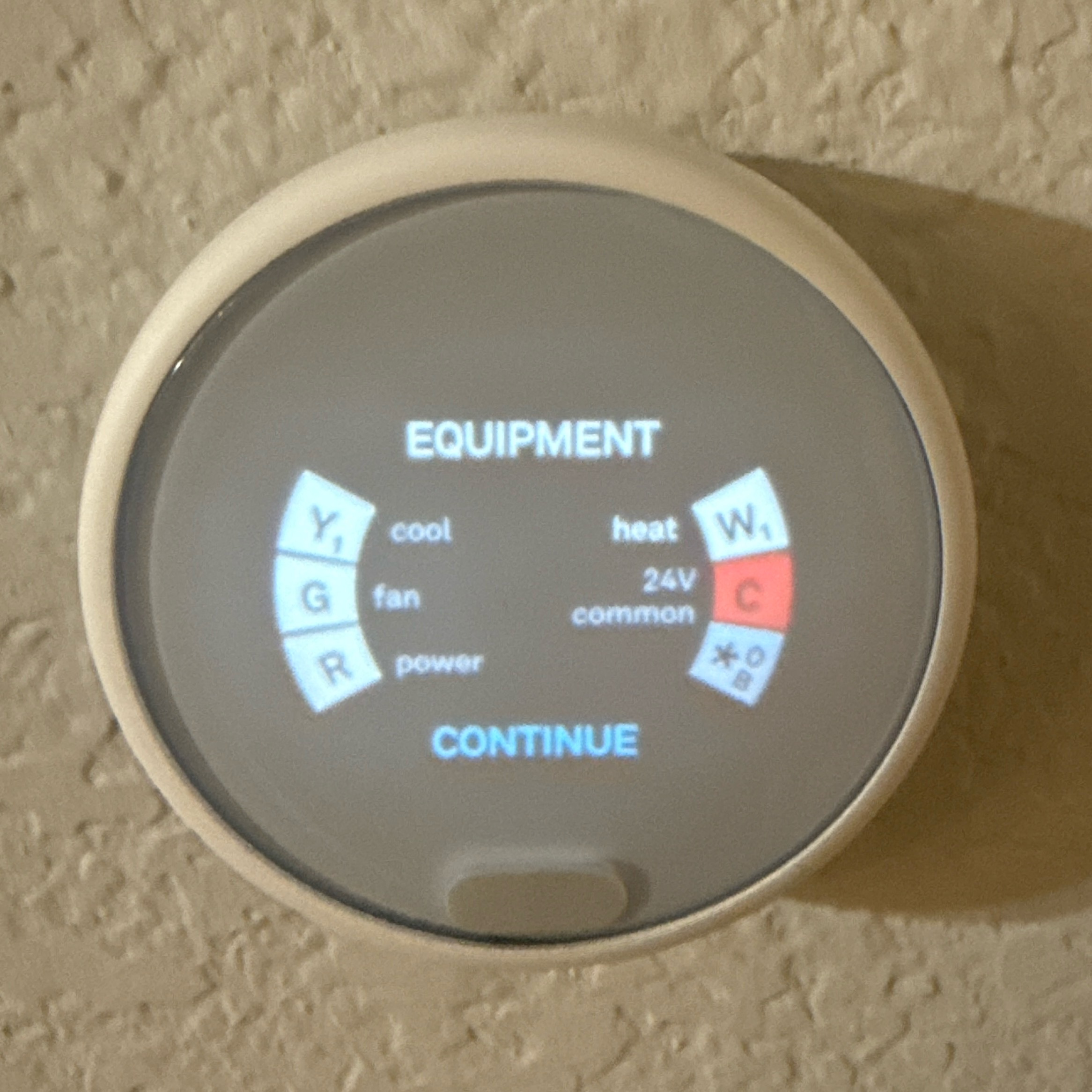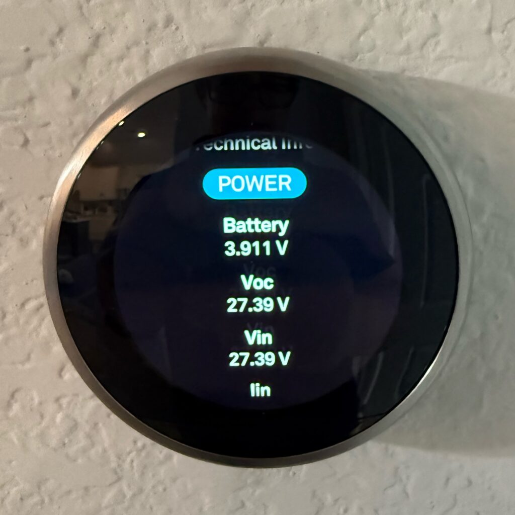 The Nest showed that it couldn’t detect the C wire — that’s the “Common” wire, basically the “neutral” for power. It also showed Von and Vin voltage of only 2 volts. It seemed to be trying to “pull” power from other signal wires — the HVAC would turn on from time to time as if the thermostat was sending a cooling signal.
